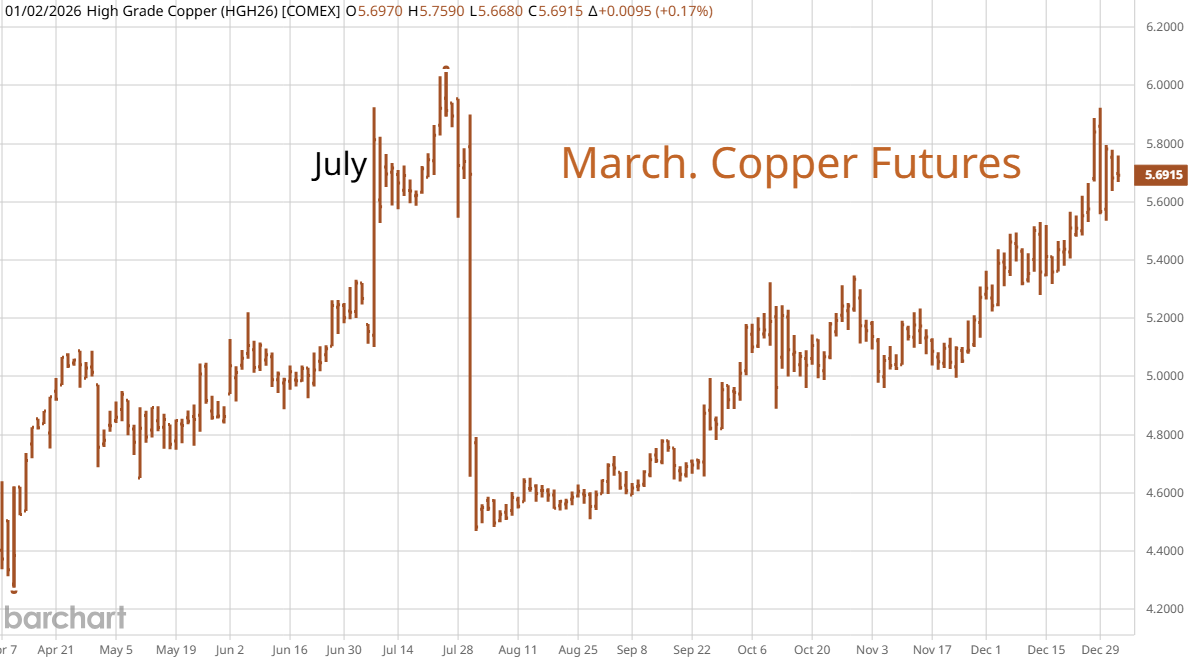 The U.S. price for copper spiked last summer due to tariff concerns. We are near those highs now. The story with copper is data center demand and the build out of more energy infrastructure that goes with the projected electricity needs from today's data center designs. What happens when the technology changes and much less electricity is needed to get the same results. Last week I saw another report on the use of lab grown brain cells for computing instead of massive data centers. The researchers say that these work just as well as massive data centers, using a very small space, very little electricity and minimum temperature control. Future technology improvements are not reflected in the prices of things assumed to benefit from current technology.