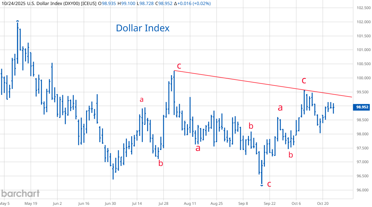 Dollar - The recent pattern still looks more corrective. We need a clear move above the recent range to change that.