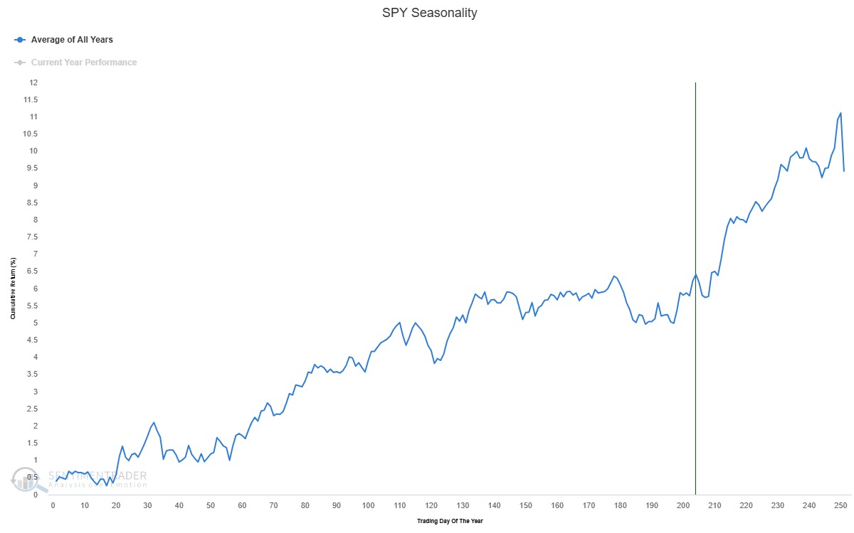 As usual, I will show pictures and graphs found on Zerohedge.com, Sentimentrader.com, which include the Seasonality charts and charts made on Barchart.com. I will also mention "cycle low timing bands" suggested by another market website to which I subscribe, Cyclesman.com.