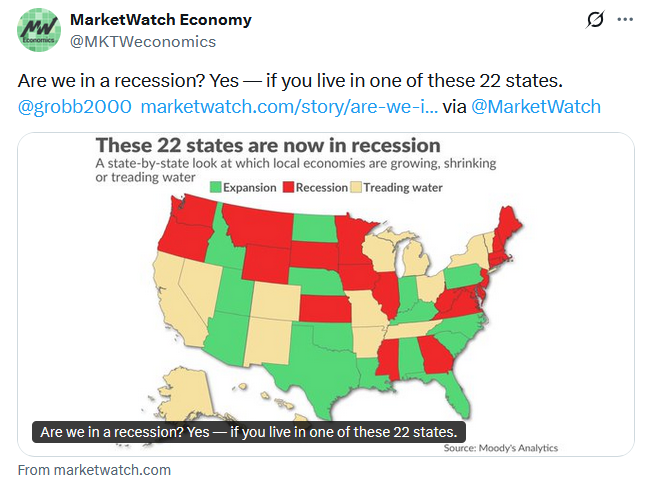 A Market Watch article showed the graph to the right. Based on a basket of metrics, 22 states are not doing well.