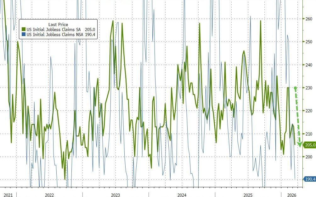 New Claims for Unemployment Benefits came in at 210,000 (left), continuing the streak of businesses keeping employees. You have to go back to 1969 to find a similar period of low layoffs. The four week moving average of New Claims and Continuing Claims (right) also fell.