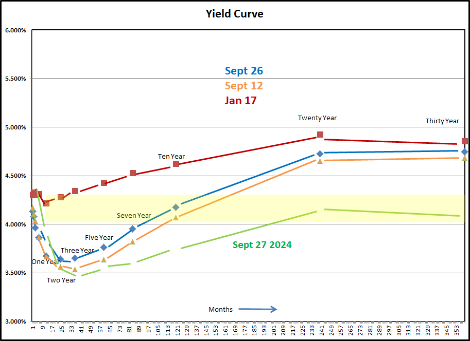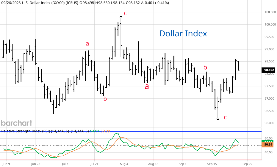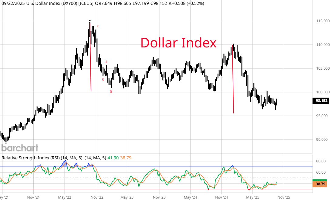 Over the last couple of months there was a universal chorus among analysts singing "Dollar Lower." In my last two updates I noted that this usually leads to a rally and indeed, that is what we got. As you can see from the yield curve graphs, the cut in overnight lending rates did not do much to help longer dated rates. All it really did was lower the government's cost of issuing very short term T Bills, give banks and financial institutions an excuse for paying you less on your money market funds and lower borrowing costs for hedge funds that tend to borrow on the very short end of the curve to finance speculation in the markets. A big factor in last week's Dollar rally was the intrusion of Russian jets into NATO territory and a meeting where NATO members told Russia that they are going to shoot down jets that come over the border. This was followed by Russia saying that if someone shoots down their jets it will be the beginning of WWIII. President Trump then encouraged NATO members to shoot down the jets and said he thinks Ukraine can win back all of its territory lost to Russia. Lastly, high ranking U.S. military officers from all over the world were ordered to attend an in-person meeting at the Pentagon. None of this looks good for the future and for Europe in particular. Would you want all your wealth in a currency that is based in a part of the world where the future weather forecast is "Cloudy with temperatures of 5,000 degrees F?"