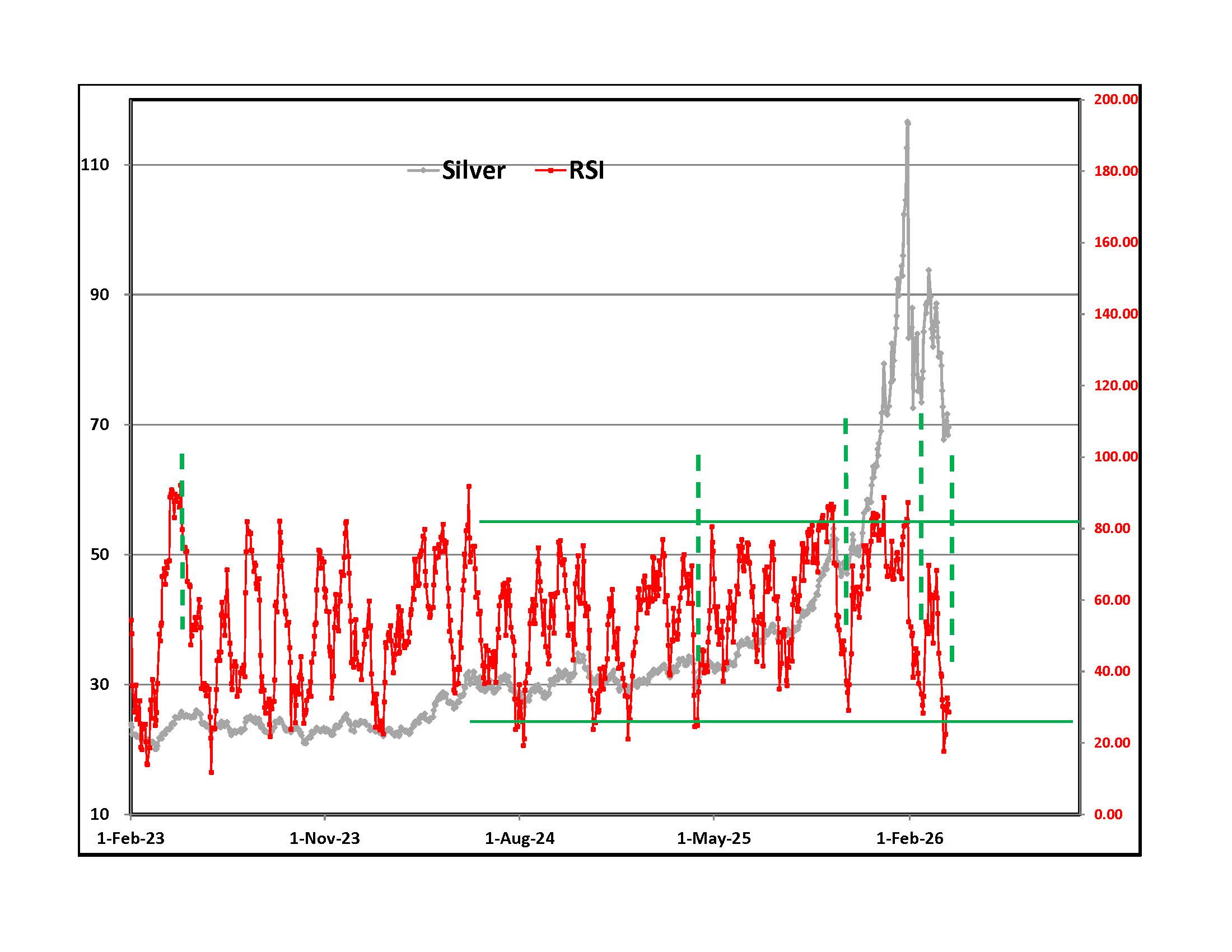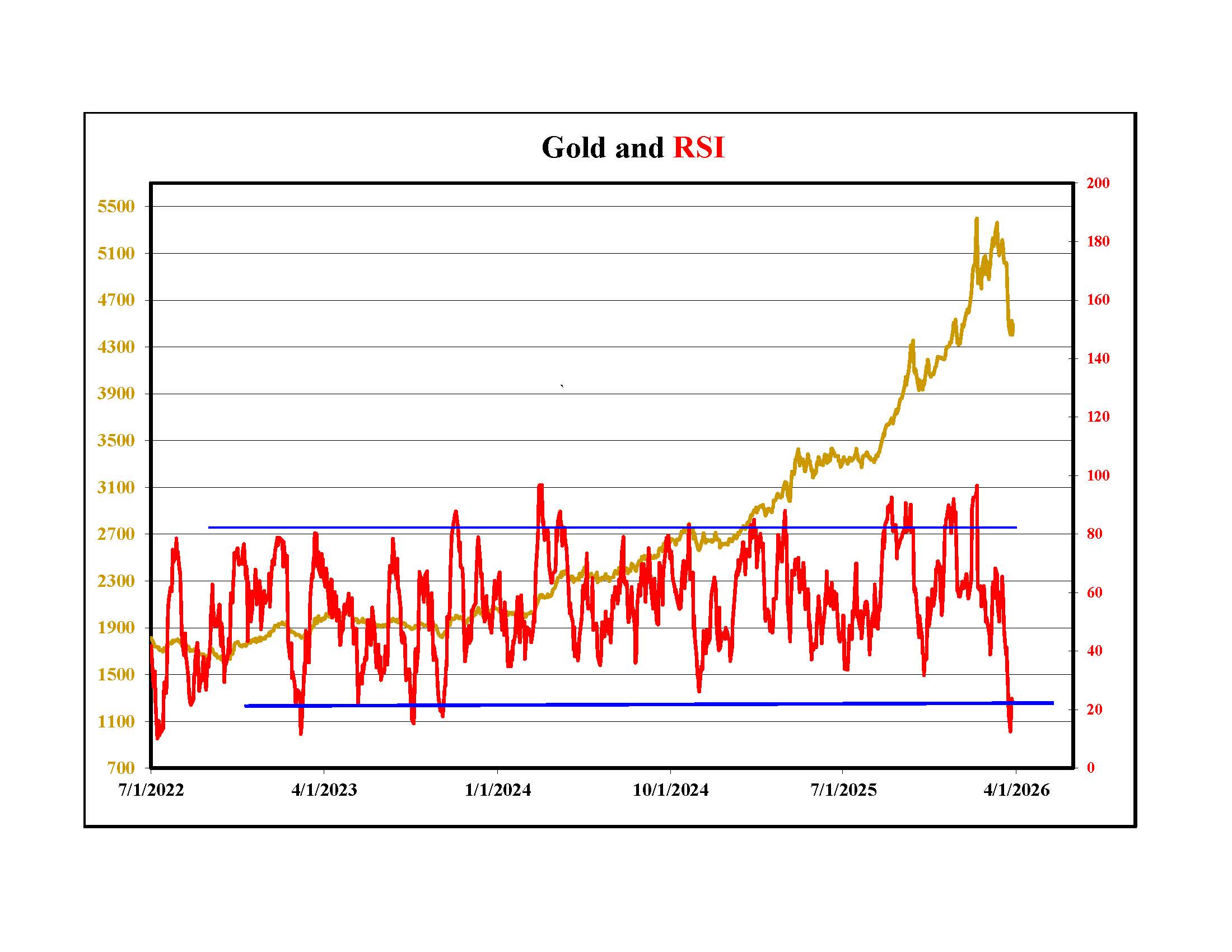 Silver lost nearly half its value in the first plunge. The upper right chart shows the daily closing price in NY and a simple RSI momentum oscillator. It is at levels where silver usually rallied in the past but with the war ongoing and cash needs increasing, who dares to buy?