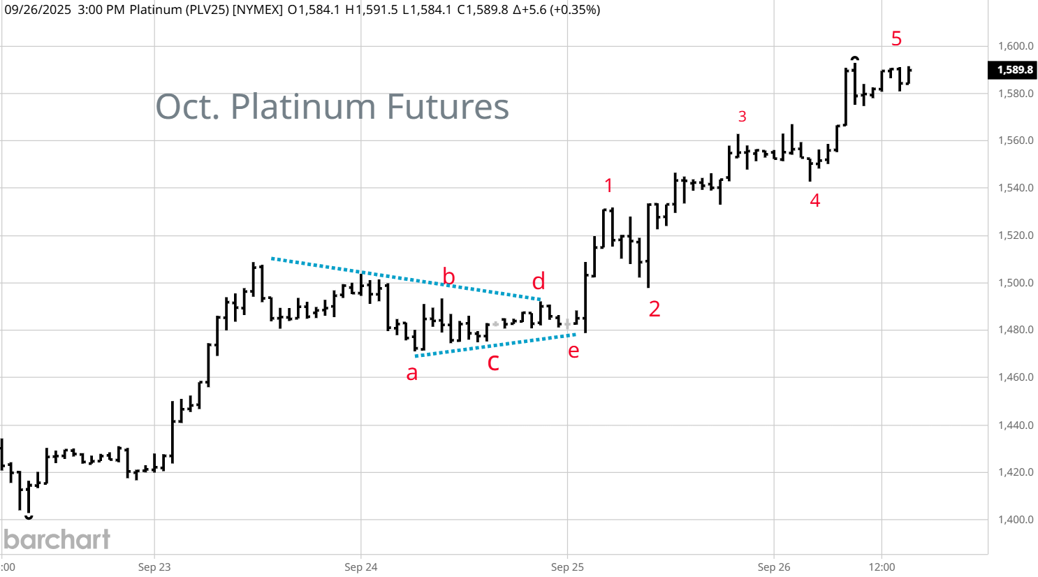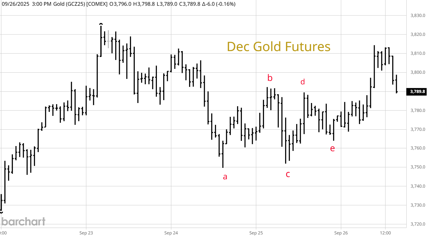 I am going to do something different this week and focus on a chart pattern that I often mention, an Elliott Wave Triangle formation. I am doing this because chart configurations in some of the most popular markets look like they are making triangles and people have their financial futures linked to these markets.