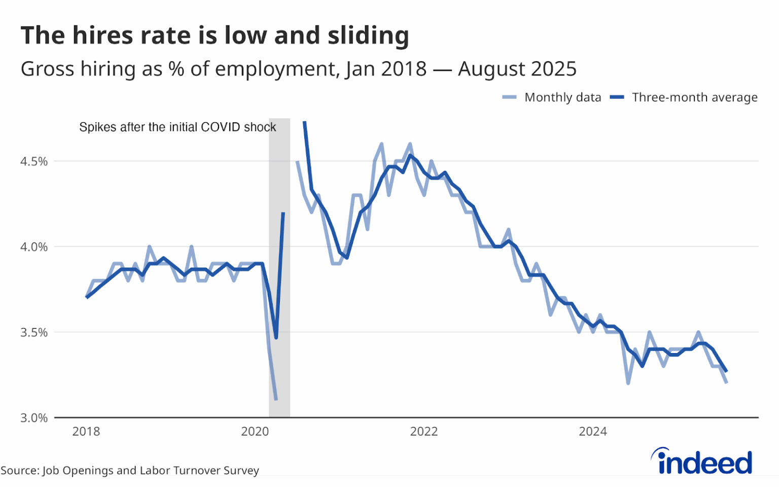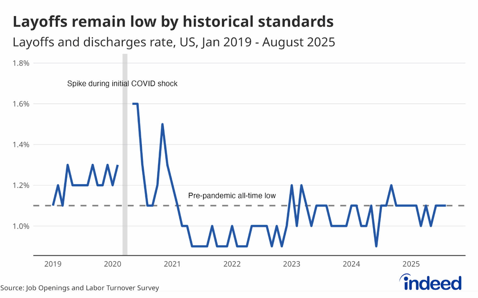 Indeed, the big jobs website, publishes employment trends based on what they see among companies that use their services. According to their records, layoffs are still historically low while hiring is slowing down. This gives credence to the theme that companies are not laying off lots of workers while at the same time, they are not hiring. There are reports that well educated college graduates are having a hard time finding entry level positions.