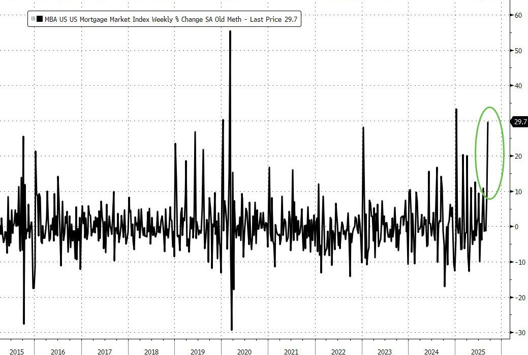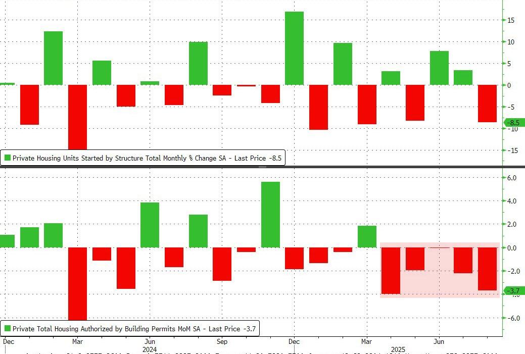 Housing starts and permits (upper left) were both down significantly. The good news is that mortgage rates fell in anticipation of lower rates in September and prospective buyers flooded financial institutions with mortgage applications (upper right) hoping to lock in what proved to be a temporary low in rates. Those rates rose a bit over the last week.