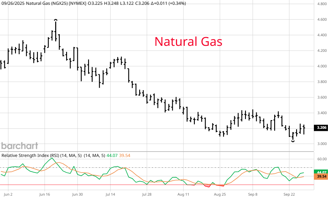 Analysts say the there will be a glut in crude oil next year but any news that hints of war sends the price higher. President Trump is trying to punish countries that buy Russian Crude. If successful, it will create more demand for non-Russian oil. Natural Gas even firmed up a bit on the news. Stored Natural Gas supplies in Europe would be the first thing to be targeted in a war. During a period of conflict, you cannot have enough energy.