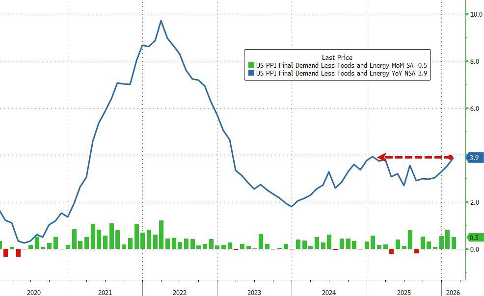 When food and energy are taken out of the equation (upper right), the month over month increase was 0.5% with an annual increase of 3.9%, almost double the Fed's 2% target.