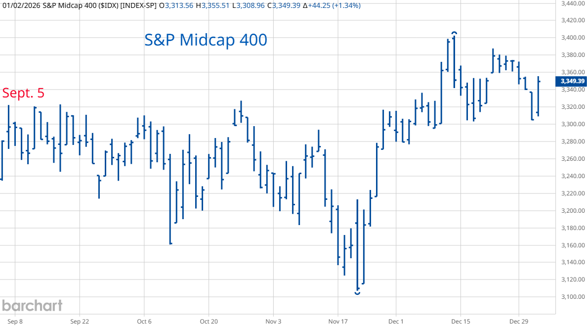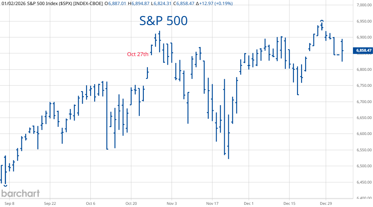 The NASDAQ 100 closed right around its high from Oct. 20th. The Russell 2000 hit a low on Friday morning that was within the range of where it traded on September 23rd. A lot of strategists are predicting a rotation away from the tech sector with the smaller, Russell 2000 companies doing better. It might happen in 2026 but has not happened yet.