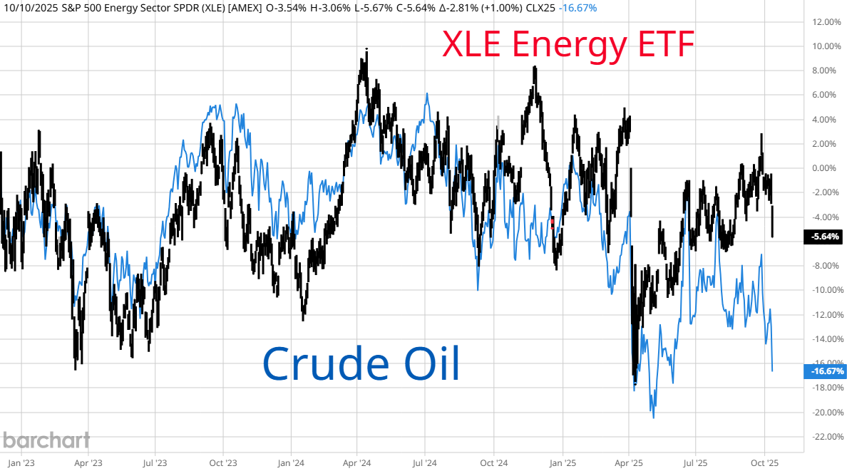 To the left is the big energy ETF, XLE with oil in blue. Despite lower oil prices, investors bought energy shares. They dumped them on Friday, along with everything else but they are still rich relative to oil. There is a seasonality with oil. Historically, it tends to be weak into December and sometimes into January. For those of us waiting for a pullback in the shares, we might get our opportunity to buy near year's end or early next year.