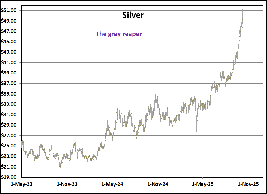 I am sticking with my theory that silver does best (and so do mining stocks) near the end of a precious metals rally. I can't buy silver when it is in red dot territory.