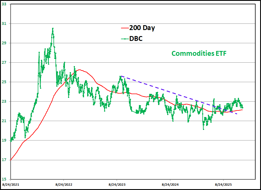 Commodities - The anticipated rally in most commodities is not happening. Watch the 200 day moving average in DBC and GSG. War is traditionally good for commodities. With peace temporarily breaking out here and there, war trades will liquidate. The new chip technology needs much less energy and half the copper that is being used now. Once this sinks in you should see it reflected in prices.