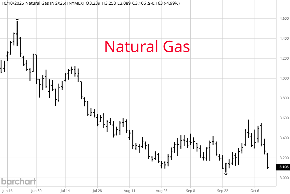 Energy traders have a delicate balance to weigh. Most surveys show a glut of crude on the world markets but what happens if war breaks out? With a potential peace deal in the Middle East, some of the war threat diminished and oil sold off. Natural gas hit the skids too after domestic supply and consumption stats didn't look good. The recent hot weather kept prices up for a bit. The next thing to watch will be cold fronts that bring winter heating season with them.