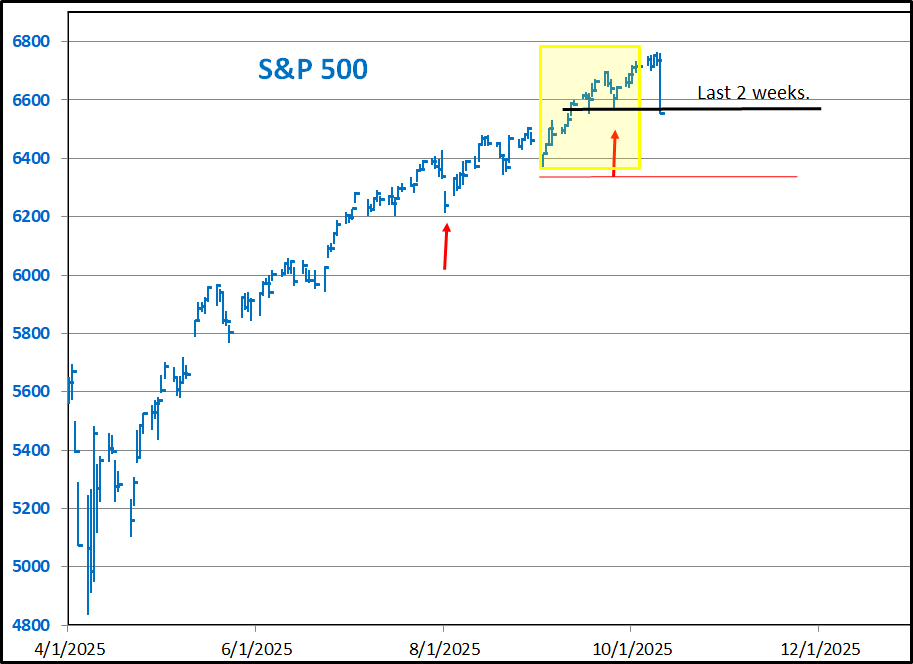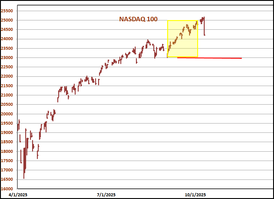 The NDX 100 made the same kind of weekly swing high. The Russell 2000 did better, probably because its individual stocks were not part of the speculative mania and are not as leveraged with ETFs and options.