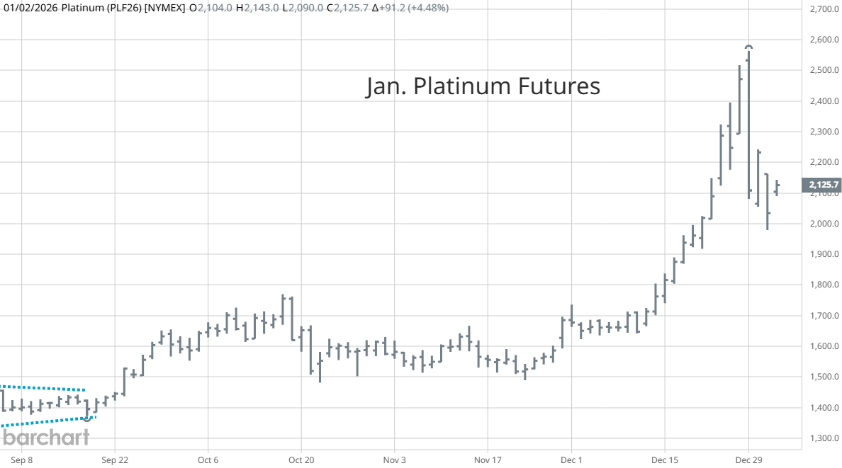 I like to think that platinum and palladium are things in themselves but they continue to follow gold on a daily basis. Last year I warned users to buy when no one cared about these metals. Mines were cutting back production due to low prices. On the demand side there were no new technologies that required much more of these metals that are primarily used for pollution control via catalytic converters and modifying hydrocarbon molecules in chemical reactions. In both cases, there is a high recycling rate. With spikes in prices, it is likely that mining companies are selling future contracts to allow them to ramp up production.
