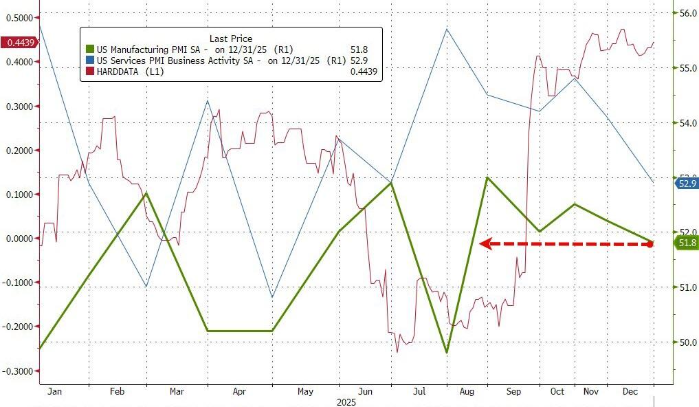 A different employment picture is presented by the graph on the left from Real Investment Advice. The update two weeks ago included data from the latest employment report. Jobs came in higher than projected but there was a continuing shift away from full time jobs toward part time positions. Full time employment as a percent of the working age population is dropping. The RIA analysts say that full time employment is important because those jobs come with benefits and a greater sense of security and willingness to consume. 70% of our economy is driven by consumer spending and without full time employment trending higher, spending is likely to be muted. They expect this to show up in 2026 unless the trend in full time jobs improves.