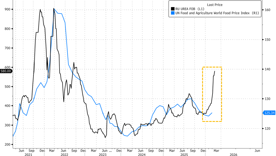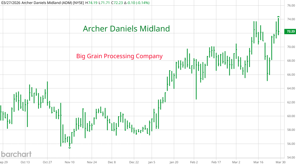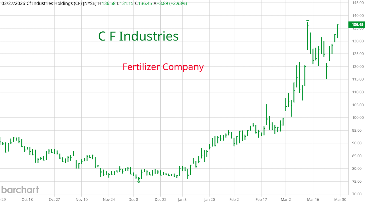 Natural Gas is used to make fertilizer. With Qatar out of business for now, there is a shortage of LNG. Some of the countries that are blockaded also make fertilizer so supplies are limited as we approach planting season in the Northern Hemisphere. Russia is also a supplier and it is likely that sanctions will be removed from their fertilizer. The soils in major agricultural belts are depleted and need fertilizer every year. Investment advisors are telling clients to buy fertilizer companies in N America, crop ETFs and companies in the food supply chain. You can see from the graph of C F Industries and Archer Daniels Midland that the move into this sector has begun. On the upper right is CVR Energy. Aside from two oil refineries and pipelines, they own two nitric acid plants in N. America. Nitric acid is used to make fertilizer. When the gold rally started, I warned that before it was over, anything that could be called precious would join it. Eventually, silver, platinum and palladium rose. If there is no peace and the Straits stay closed, everything going into crops will also catch a bid. With CVR you get it's added exposure to energy. As with everything else that is benefiting from the war, rumors of a deal and a reopening of the Straits will result in a selloff.