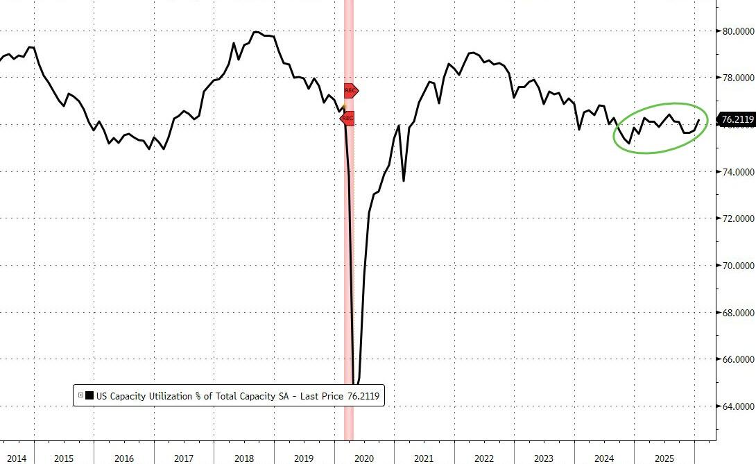 Capacity Utilization rose too (right). Governments all over the world are borrowing huge sums of money and injecting it directly into their industries. In the U.S. we have laws that allow quick write offs for expenditures and new equipment. Given this worldwide push to expand manufacturing, it would be surprising if we did not see improvements in these numbers. We have to remember that it is being driven by debt fueled spending and speculative investment in data centers.