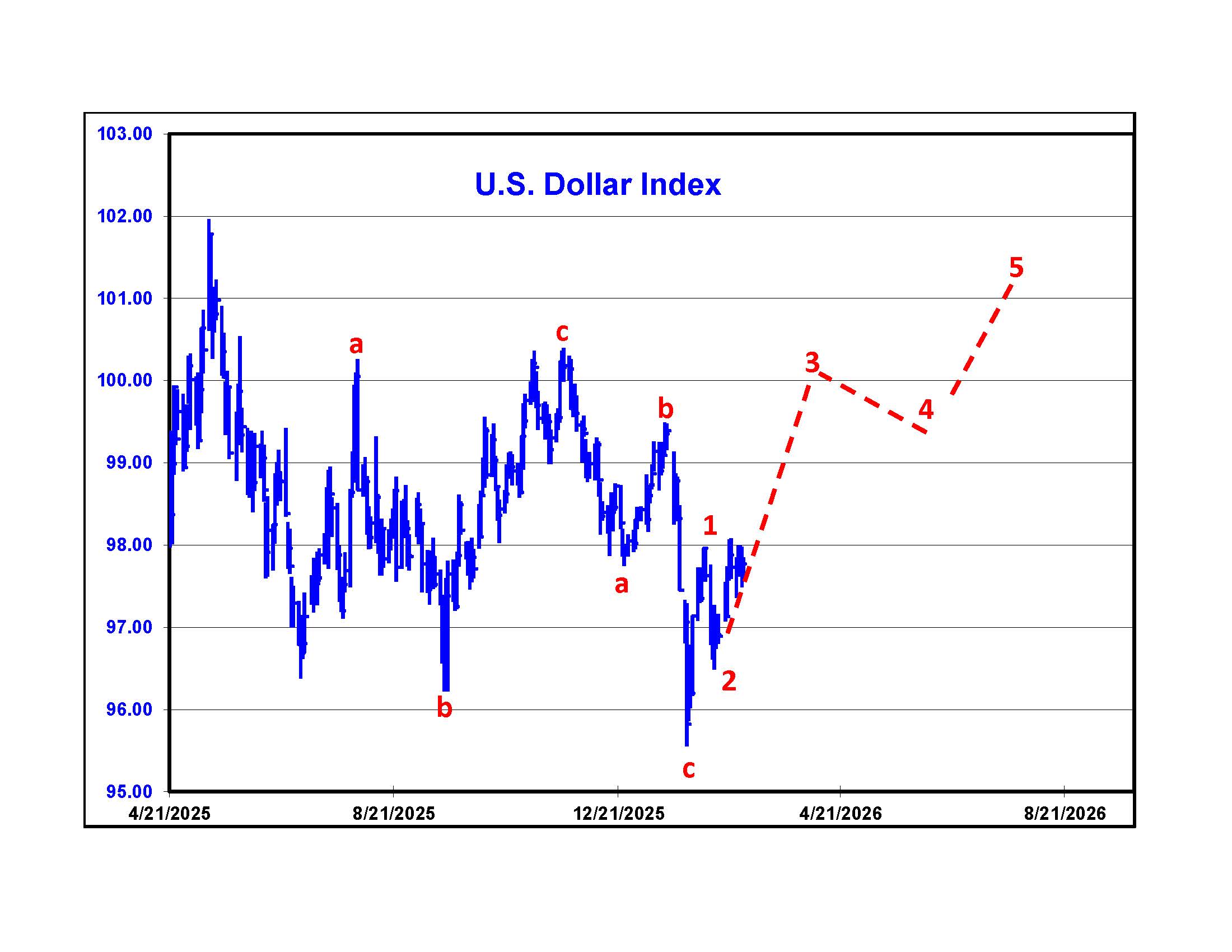 On the left is a daily bar chart of the U.S. Dollar Index. My theory is that it started the third leg of an upward correction. The most heavily weighted currency in the index is the Euro. Europe, and particularly Germany, gave up on fiscal responsibility and they are now borrowing and spending to try and pump up their domestic economy. Japan elected a new Prime Minister who is going all in on more borrowing and spending. The central bank finally let interest rates rise last year. There are reports that the new Prime Minister will appoint more dovish people to the bank who will try and suppress rates. There is an old saying that you can control a country's interest rates or the value of its currency but you can't do both. If the Bank goes back to suppressing rates, the currency will suffer (go higher on the red graph) and the Dollar will do better.