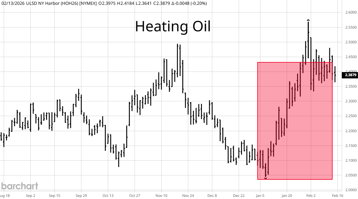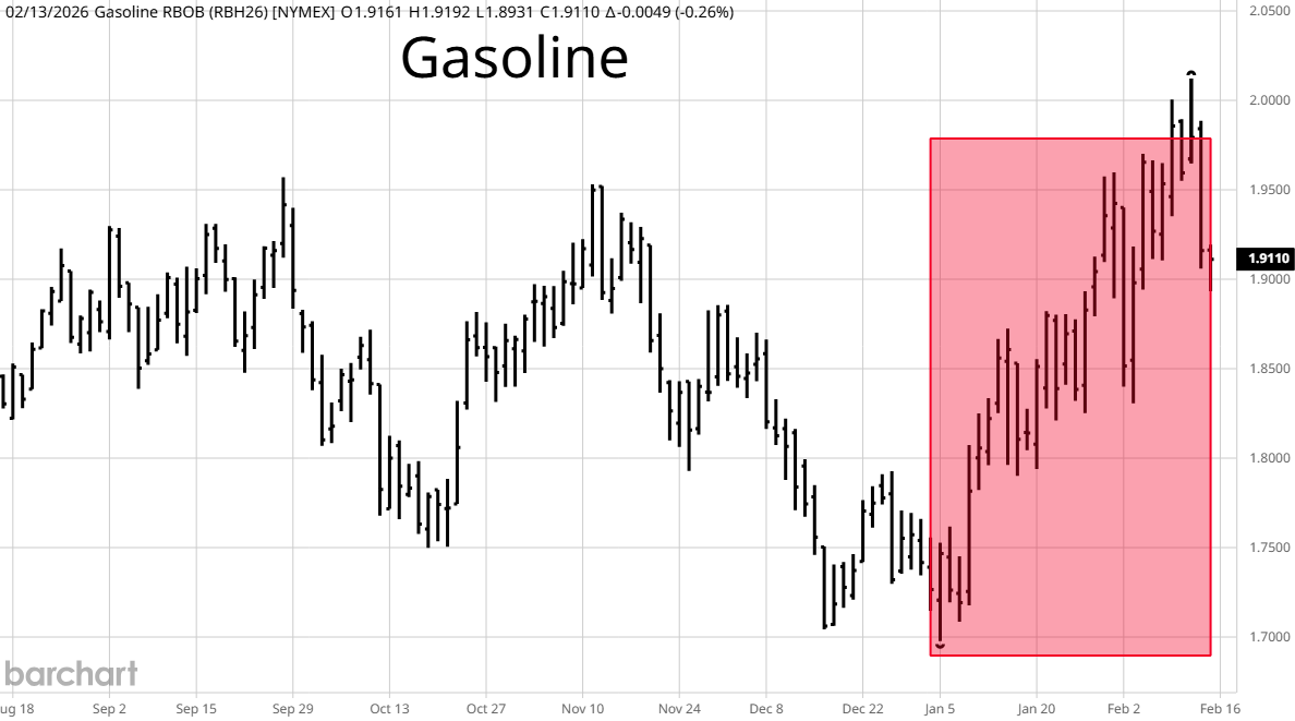 With most of the improvement in the inflation numbers coming from motor fuel costs it is worth looking at the prices of gasoline and heating oil, a proxy for diesel, in February to see if the low CPI reading will carry into next month's data. The pink rectangles highlight this month's prices. With the odds of a strike on Iran and their promises of retaliation increasing, energy prices rose. This goes against President Trump's desire to lower fuel prices for consumers and with midterm elections approaching this could be why President Trump is (so far) favoring negotiations and intimidation over military action.