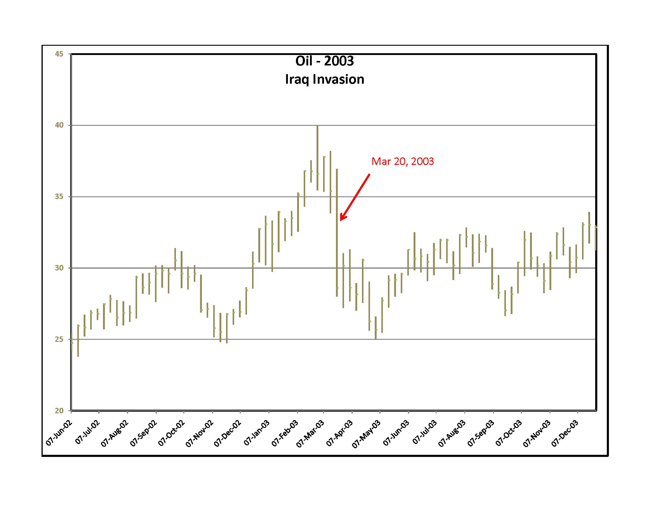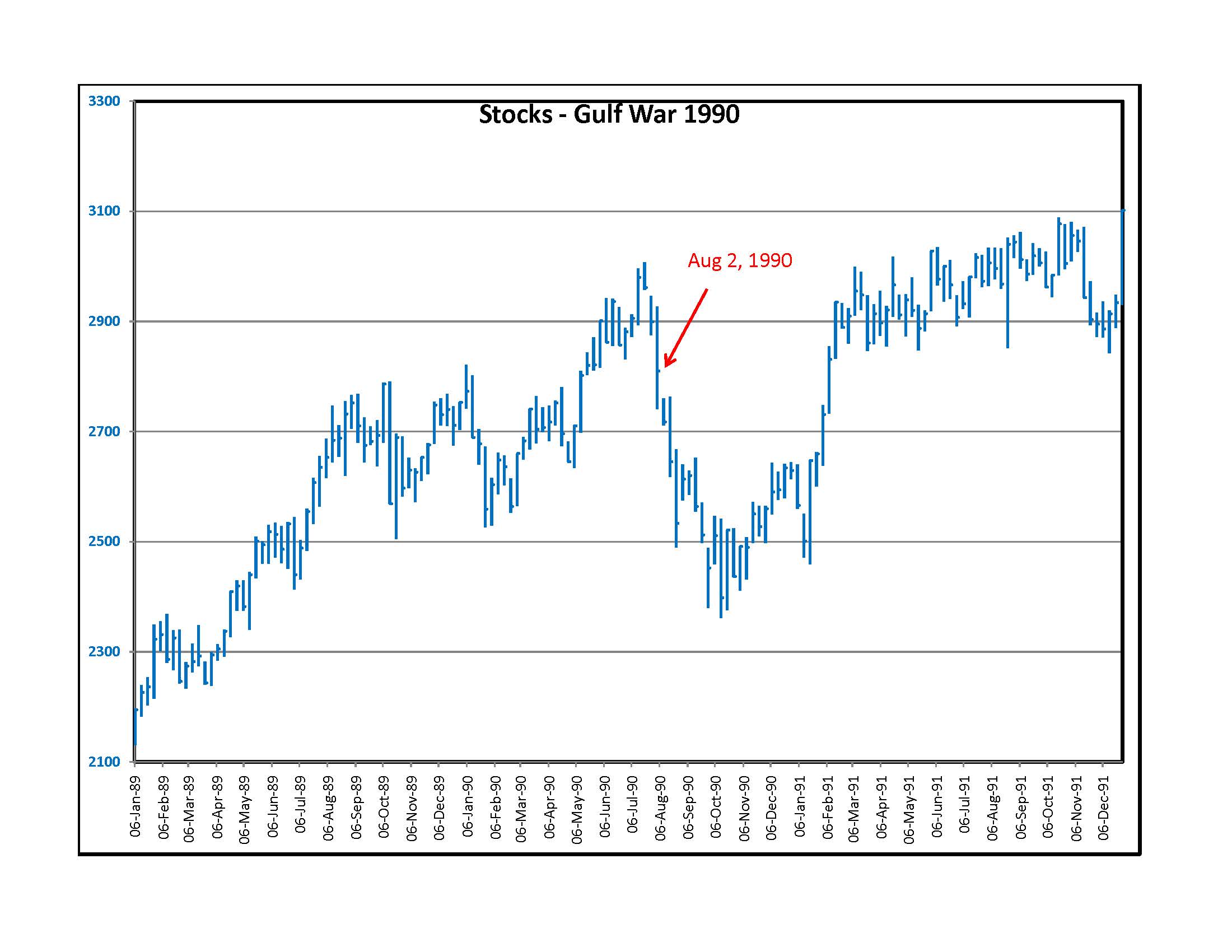 Below are graphs of gold, stocks and oil from two previous invaisons of Iraq.