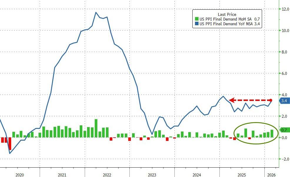 Producer Prices (upper left) rose 0.7% in February, much hotter than anticipated. This lifted the year over year gain to 3.4%. Tariffs got the blame but the details behind the headline numbers showed that more than half of the rise came from services, mainly transportation and warehousing. Goods were up 1.1% with forty percent of that coming from food prices. These numbers were before the Iran war started so March readings will be worse.