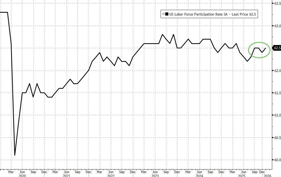 The labor force participation rate ticked up slightly (left) but the number of weeks it is taking for unemployed workers to find a new job also rose (right side). Health Care added 82,000 jobs while social assistance jobs increased by 42,000. Construction was also positive, adding 33,000 positions.