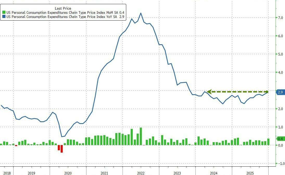 On the left are survey results from purchasing managers for services (green) and manufacturing (blue). Both fell last month. The red line tracks hard data as opposed to surveys. The Hard series rose steadily last year. Now it is falling. On the right is graph tracking the price index for Personal Consumption. It was hotter than expected last month, rising 0.4% with the annual reading at 2.9%. This is the highest in a year which is not a good sign for those looking for the Fed to cut overnight lending rates.