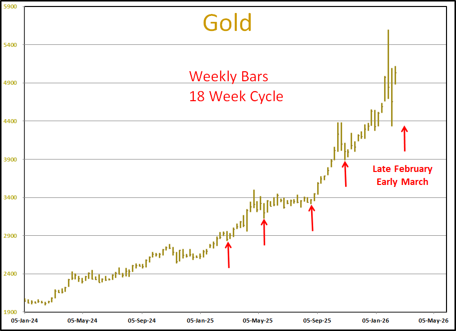 Gold and Silver - I would like to see another sell off into the Cyclesman.com's 18 week cycle low timing band which is due late this month into early March.