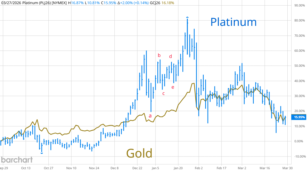 Platinum and Palladium are following gold.